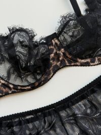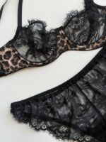 برش دکلته کاپ تنخور زیبایی به کار میدهد. فنر زیر کاپ کمک میکند دانتل ظریف آن به زیبایی روی تن بنشیند. شورت اسلیپ با دالبرهای حاشیه راحتی و زیبایی را توامان فراهم میکند